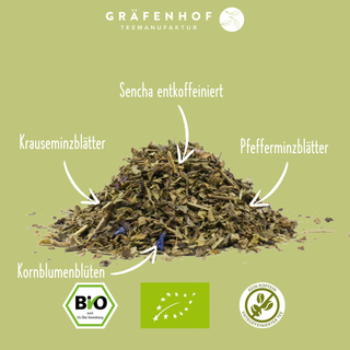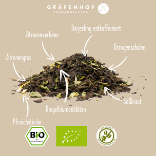 Dank unseres schonenden CO2-Verfahrens bleiben Geschmack und wertvolle Inhaltsstoffe erhalten. So kannst du deine Tasse Tee zu jeder Tageszeit genießen, ohne dir Sorgen um deinen Koffeinkonsum machen zu müssen. Entdecke die Vielfalt unserer koffeinfreien Tees und genieße unbeschwert!