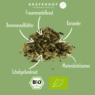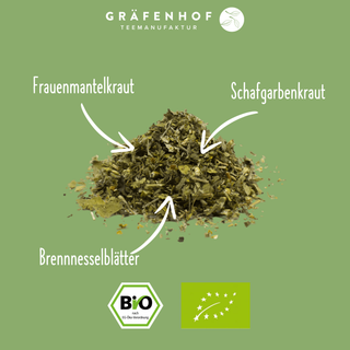 - Frauentees: Mischungen mit Himbeerblättern, Frauenmantel oder Schafgarbe
