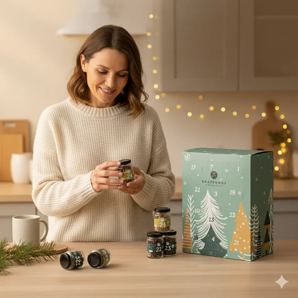 Starte die Black Week mit Vorfreude! Sichere dir jetzt deinen Bio-Tee-Adventskalender und genieße 24 Tage voller Teemagie – pünktlich vor dem 1. Dezember bei dir.